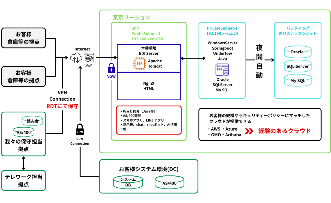 真心こめたサービスで革新性を追求し、最適な提案を BUISINESS 事業内容 西東京、所沢、九州・沖縄地区をメインに中小規模の物流会社に、サブスクにてWMSやTMSを提供 02サブスク事業 CIMU-W(倉庫システム)CIMU-T(配車システム)CIMU-R(レセプトシステム) PC、ネットワーク、ソフトウェアーのトラブル等のシステムに関する問合せ(ヘルプデスク)に対する保守業務を提供 01システム保守事業 既存の会社様の保守事業AS/400ユーザー様への保守サポートシステム部門が手薄の企業への保守サポート事業 組織(パートナー含む)体制 ①地場営業・東京・東京近郊・九州沖縄地区・パートナーDS 株式会社 株式会社 NLJ②作業場所・東京テレワーク・沖縄ニアシュア開発(沖縄にサテライト事業所設立)③協力会社・NLJ(東京)、中国大連 NLS オフシュア・福岡 APEX(ニアシュア) メーカーや物流会社に、物流システムや物流業務改善のソリューションを提供 03システムソリューション 物流システムコンサル物流業務システム提案 BUISINESS 事業内容 PC、ネットワーク、ソフトウェアーのトラブル等のシステムに関する問合せ(ヘルプデスク)に対する保守業務を提供 01システム保守事業 既存の会社様の保守事業AS/400ユーザー様への保守サポートシステム部門が手薄の企業への保守サポート事業 西東京、所沢、沖縄地区をメインに中小規模の物流会社に、サブスクにてWMSやTMSを提供 02サブスク事業 CIMU-W(倉庫システム)CIMU-T(配車システム)CIMU-R(レセプトシステム) メーカーや物流会社に、物流システムや物流業務改善のソリューションを提供 03システムソリューション 物流システムコンサル物流業務システム提案 組織(パートナー含む)体制 ①地場営業・東京・東京近郊・九州沖縄地区・パートナーDS 株式会社 株式会社 NLJ②作業場所・東京テレワーク・沖縄ニアシュア開発(沖縄にサテライト事業所設立)③協力会社・NLJ(東京)、中国大連 NLS オフシュア・福岡 APEX(ニアシュア) organization 組織体制(パートナー含む) 地場営業 東京・東京近郊・九州沖縄地区 パートナー DS株式会社株式会社NLJ 作業場所 東京テレワーク沖縄ニアシュア開発(沖縄にサテライト事業所設立) 協力会社 NLJ(東京)、中国大連NLSオフシュア福岡APEX(ニアシュア) SYSTEM 弊社が提供できる、クラウサービスを利用したシステム環境 Contact us お気軽にお問い合わせください お問い合わせフォーム